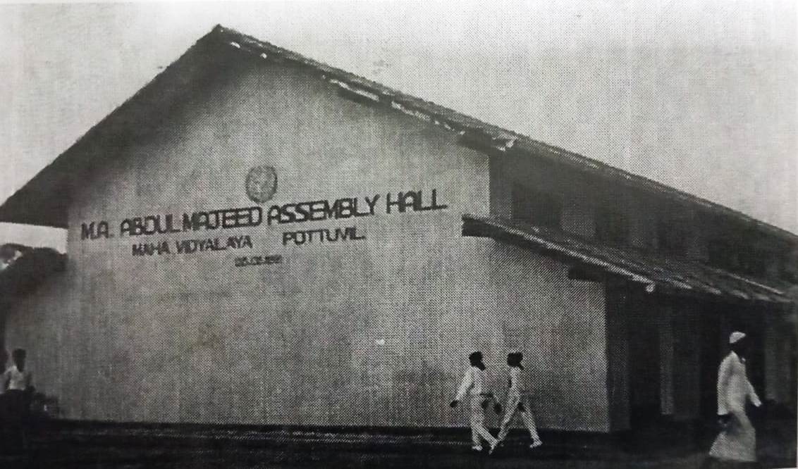In 1948 when Sri Lanka became independent, Alhaj M.M. from Nindavoor was the Honorary Member of Parliament for Pothuvil Constituency. Ibrahim (Suprindan) In Annar Pothu, the school gate of the village was close to the Maraikayar Sabha and the dignitaries, especially Janab, the preacher of the Maraikayar Sabha, s.a.m., Abdul Razak Mela, the chief Maraikayar. Ah, Janab, one of Miralev's Vidana and Kudimaraikai, E.L. Meera Sahib was friendly with Bhodiar. On the occasions when she comes to Pothuvil, these dignitaries frequently discuss with her about Pothuli's educational status. Because of this, M.M. was well aware of Pothuvil's educational problems. Ibrahim (PBUH) was seen.